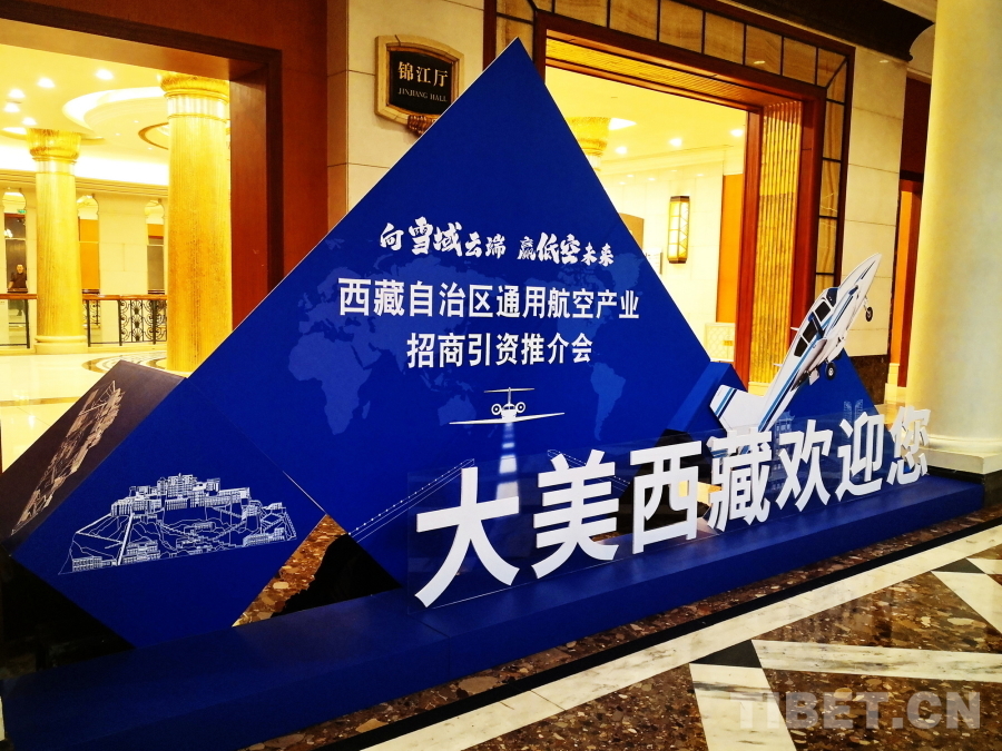 圖為西藏自治區(qū)通用航空產(chǎn)業(yè)招商引資推介會現(xiàn)場設置的展板 攝影:劉莉