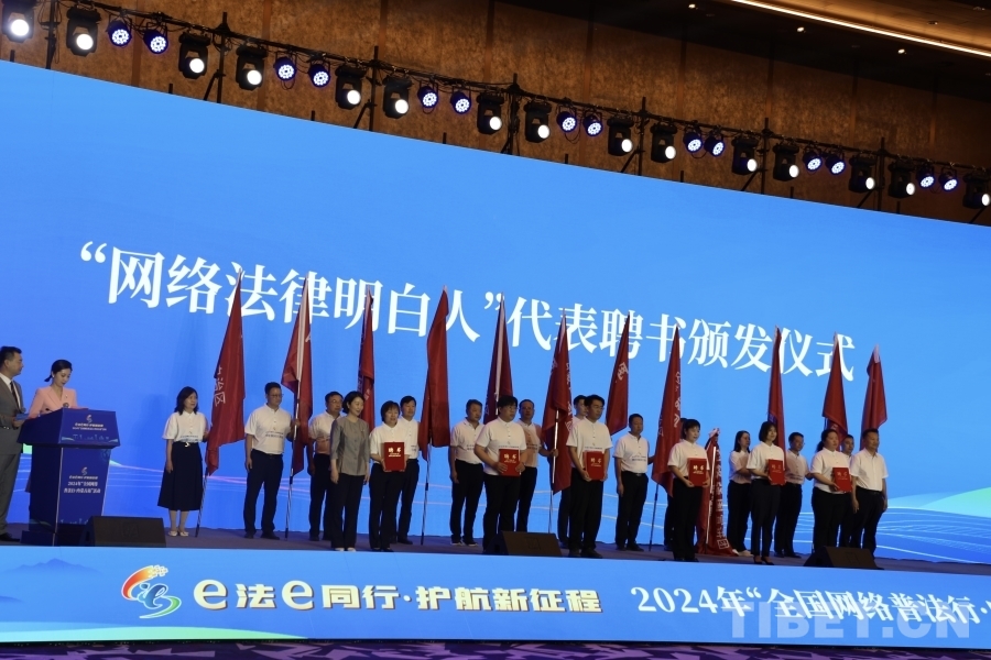圖為向“網(wǎng)絡法律明白人”代表頒發(fā)聘書 攝影:龍真多吉