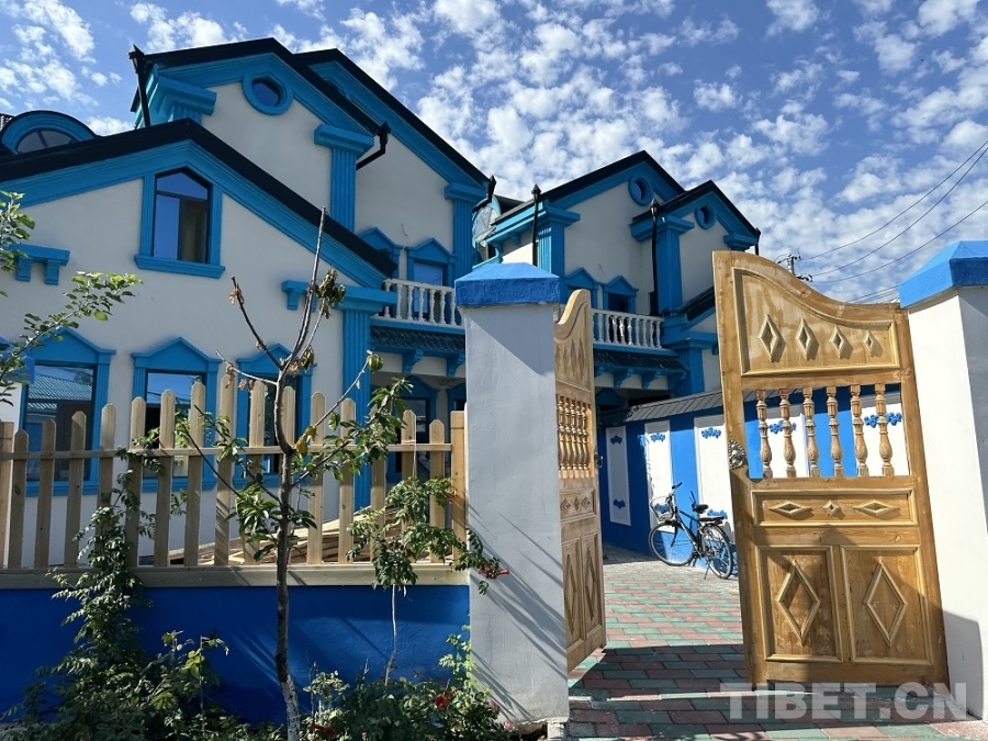 圖為喀贊其老街內(nèi)隨處可見的“伊犁藍”建筑 攝影:楊眉笑