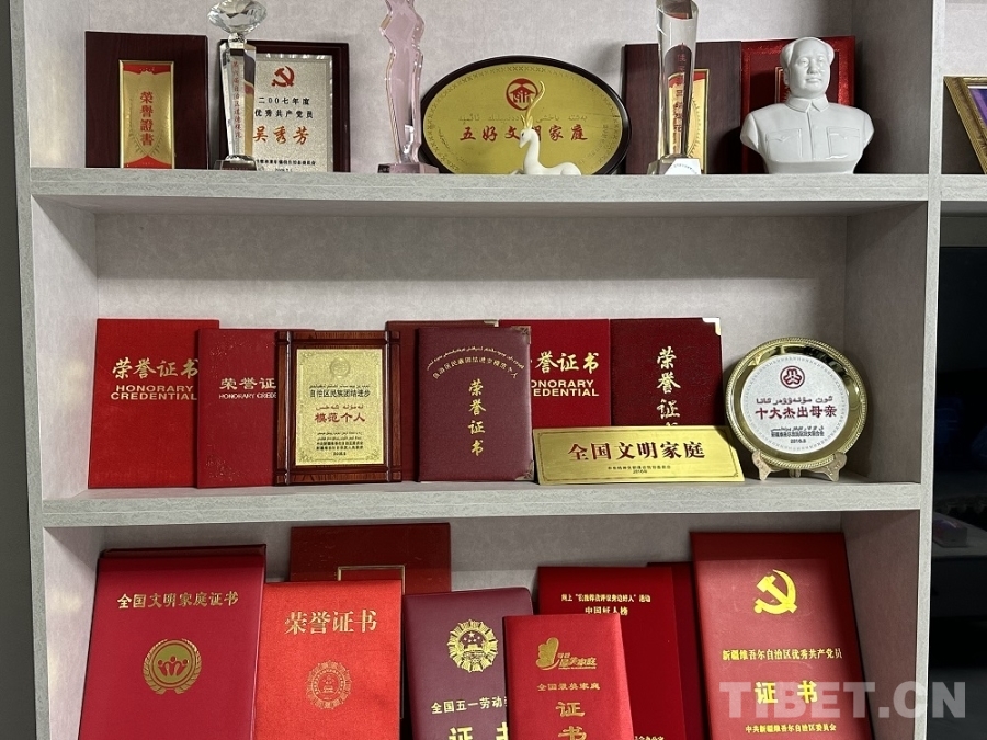 全國五一勞動(dòng)獎(jiǎng)?wù)芦@得者、全國民族團(tuán)結(jié)進(jìn)步模范個(gè)人,自治區(qū)民族團(tuán)結(jié)進(jìn)步模范個(gè)人、新疆“十大杰出母親”、全國文明家庭……記者走進(jìn)吳秀芳老人家,一面碩大的榮譽(yù)墻映入眼簾,這些都是吳秀芳——這位錫伯族母親二十多年風(fēng)雨歷程最好的見證。50年代出生的她,見證了新中國的成長,也經(jīng)歷了個(gè)人的坎坷與挑戰(zhàn)。