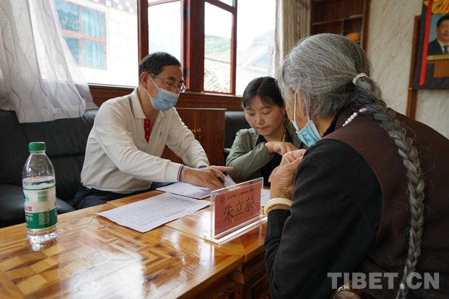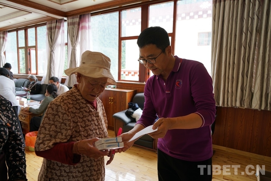 得知有來(lái)自北京的醫(yī)療專(zhuān)家為大家義診,家住白玉縣城的切呷一大早便帶著父母來(lái)到了義診現(xiàn)場(chǎng)。她的母親澤仁拉嘎今年75歲,自述下肢從腰間、腿部到腳尖都會(huì)發(fā)麻、有疼痛感,行走時(shí)腰部會(huì)很累,偶爾還會(huì)因?yàn)榭刂撇缓猛炔炕顒?dòng)而摔倒。北京水利醫(yī)院創(chuàng)傷骨科副主任醫(yī)師王耀輝在經(jīng)過(guò)詳細(xì)問(wèn)診后,為拉嘎阿媽開(kāi)具了營(yíng)養(yǎng)神經(jīng)的藥品,并建議她進(jìn)一步做胸椎和腰椎方面的檢查。