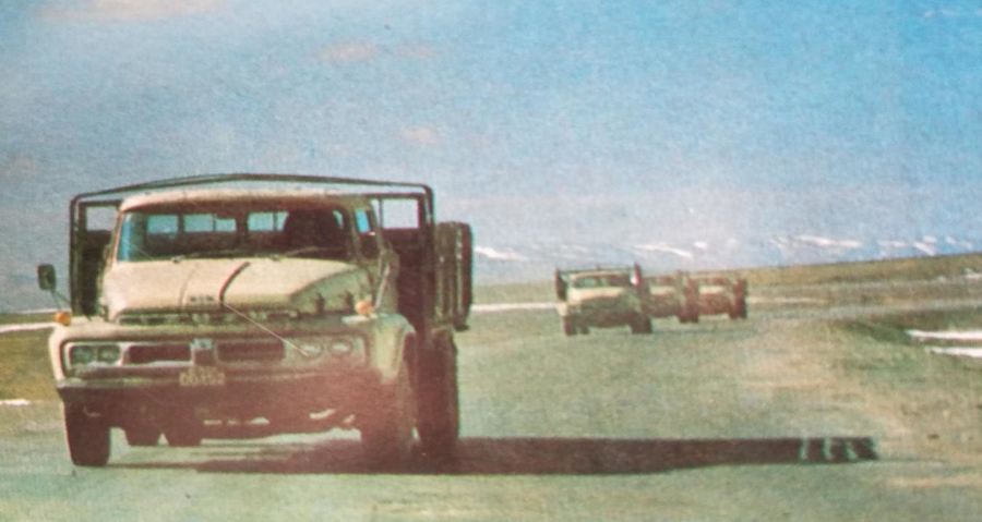 圖為70年代,青藏公路上通行的車(chē)輛