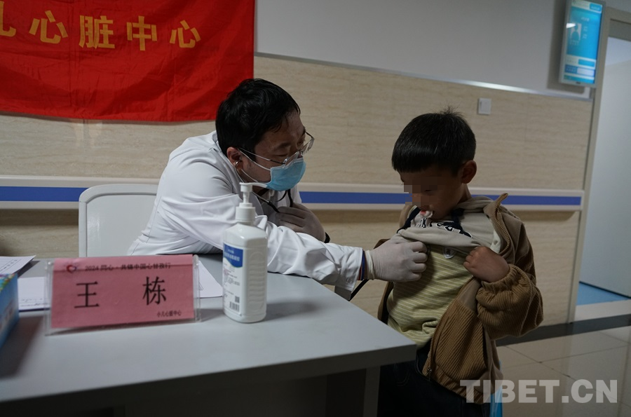 圖為北京安貞醫(yī)院小兒心臟中心副主任醫(yī)師王棟為兒童義診 攝影:周晴晴