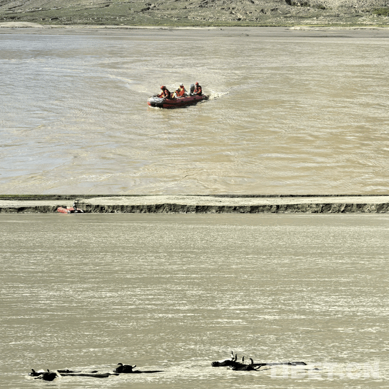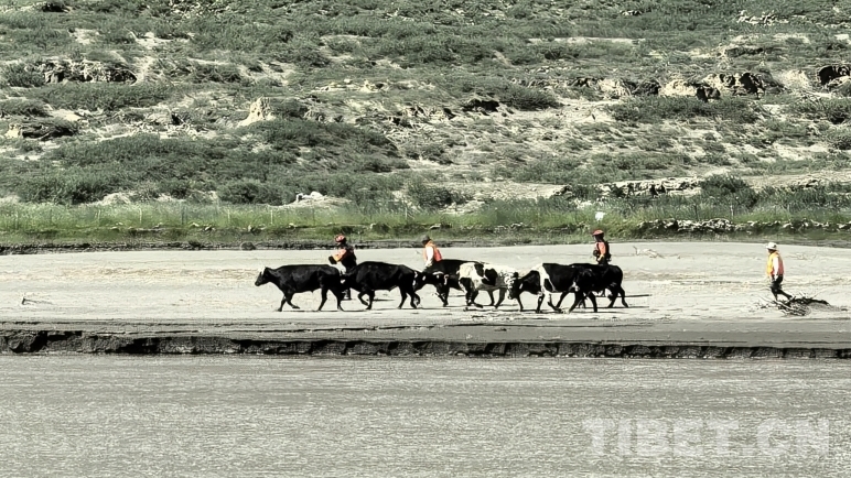 西藏拉孜:牛群被困雅江小島 公安消防合力救援