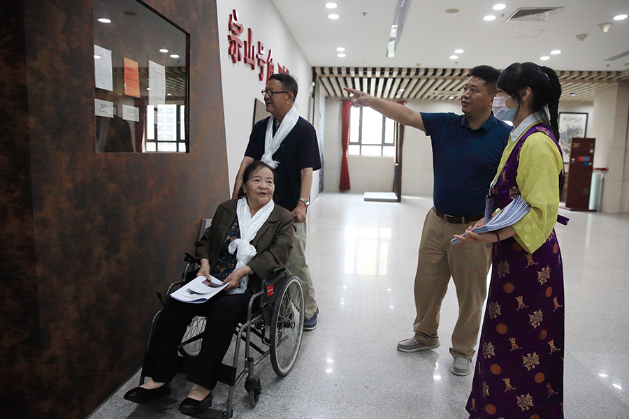 在展覽現(xiàn)場,李國柱認(rèn)真聽取講解員的介紹,時(shí)不時(shí)和大家分享她當(dāng)年在江孜工作生活的情況。李國柱與丈夫陰法唐將軍的四個(gè)女兒中,兩個(gè)女兒在江孜出生,而且有三個(gè)人的名字都是用漢語藏語音意結(jié)合起的。二女兒起名“建白”,“白”是藏語西藏的音譯,取意“建設(shè)西藏”。三女兒起名“江沙”,“沙”在藏語里是新的意思,取意“建設(shè)新江孜”。小女兒起名“亞農(nóng)”,“亞”在藏語里是發(fā)展的意思,取意“發(fā)展西藏農(nóng)業(yè)”。