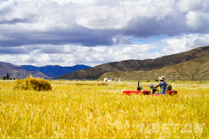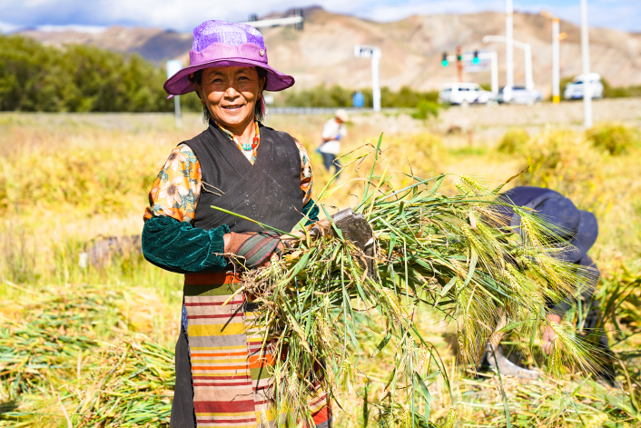 飄香的秋日一片金黃,一臺臺收割機(jī)正在青稞田里往來穿梭。2023年,西藏青稞產(chǎn)量達(dá)84.36萬噸,播種面積達(dá)222.87萬畝,累計建成高標(biāo)準(zhǔn)農(nóng)田430萬畝,青稞良種覆蓋率達(dá)到93%,主要糧食作物耕種收綜合機(jī)械化率達(dá)到71%以上。