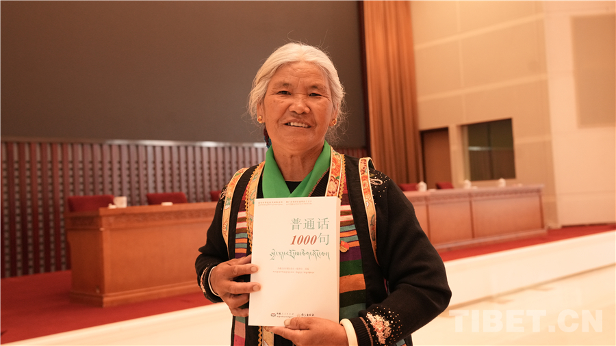新書(shū)發(fā)布會(huì)結(jié)束后,來(lái)自山南市乃東區(qū)昌珠鎮(zhèn)的群眾代表尼瑪曲珍對(duì)著藏文的譯音標(biāo)注念了幾句常用普通話(huà),她說(shuō):“發(fā)布會(huì)上,我一直在翻看這本書(shū),基本都是我們能夠在日常生活和工作中經(jīng)常用到的短句,藏文的譯音標(biāo)注更為我們普通話(huà)初學(xué)者提供了很大的便利,回頭我要好好學(xué)習(xí)這本書(shū)的內(nèi)容,也將把這書(shū)推薦給身邊想要學(xué)好普通話(huà)的農(nóng)牧民群眾?!?/p>