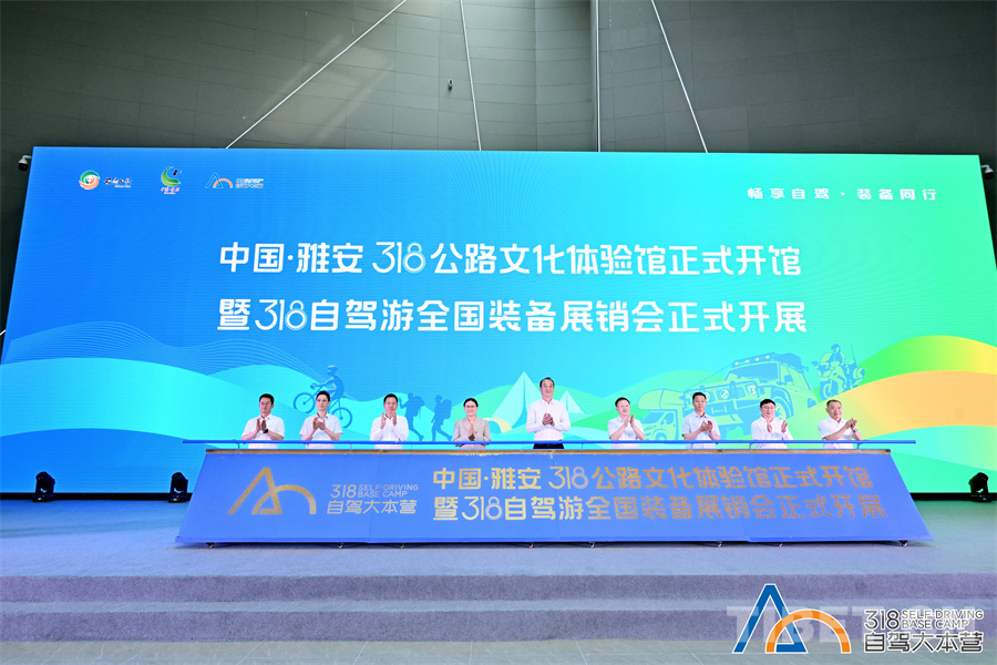圖為在四川雅安舉行的318公路文化體驗(yàn)館開(kāi)館暨318自駕游全國(guó)裝備展銷會(huì)開(kāi)展儀式現(xiàn)場(chǎng)