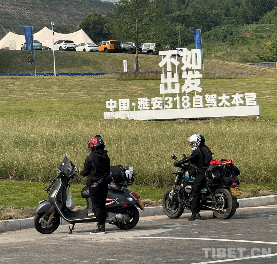 雅安318自駕大本營門口,在一塊“不如出發(fā)”的大型標(biāo)識(shí)牌面前,來自重慶和四川成都的兩位騎行女孩正整裝待發(fā)?!皣鴳c長假馬上來了,我們就想做一件平時(shí)難做的事情,騎行318直達(dá)拉薩!拉薩是另一個(gè)夢(mèng)開始的地方,我們想到拉薩見一見朋友,再嘗一下非常好喝的酸奶?!闭硗曛?,兩位騎行女孩喊出了“我們拉薩見”的告別口號(hào),戴上頭盔,伴著機(jī)車的轟鳴聲,騎行走上了318的遠(yuǎn)方。(中國西藏網(wǎng) 記者/王妍丹 蘇洋)