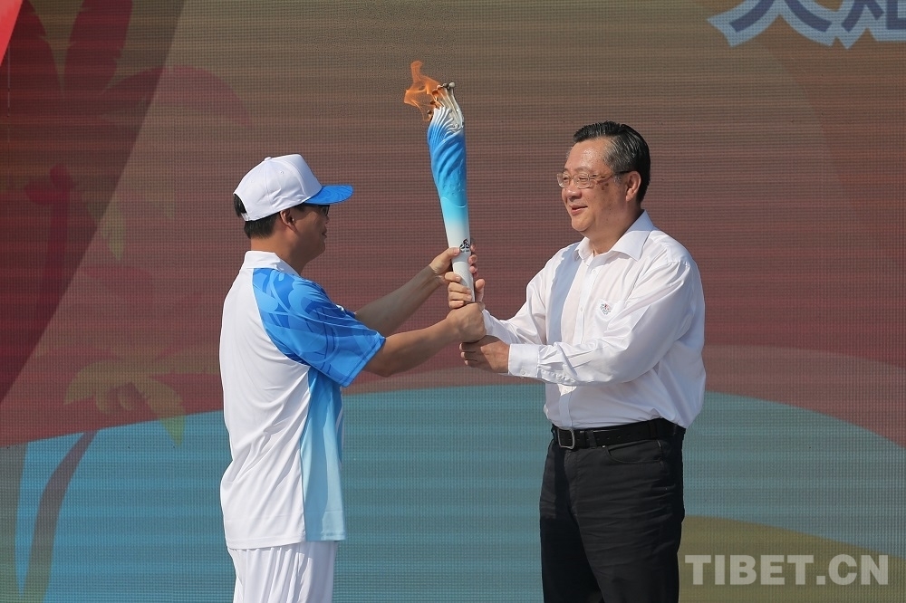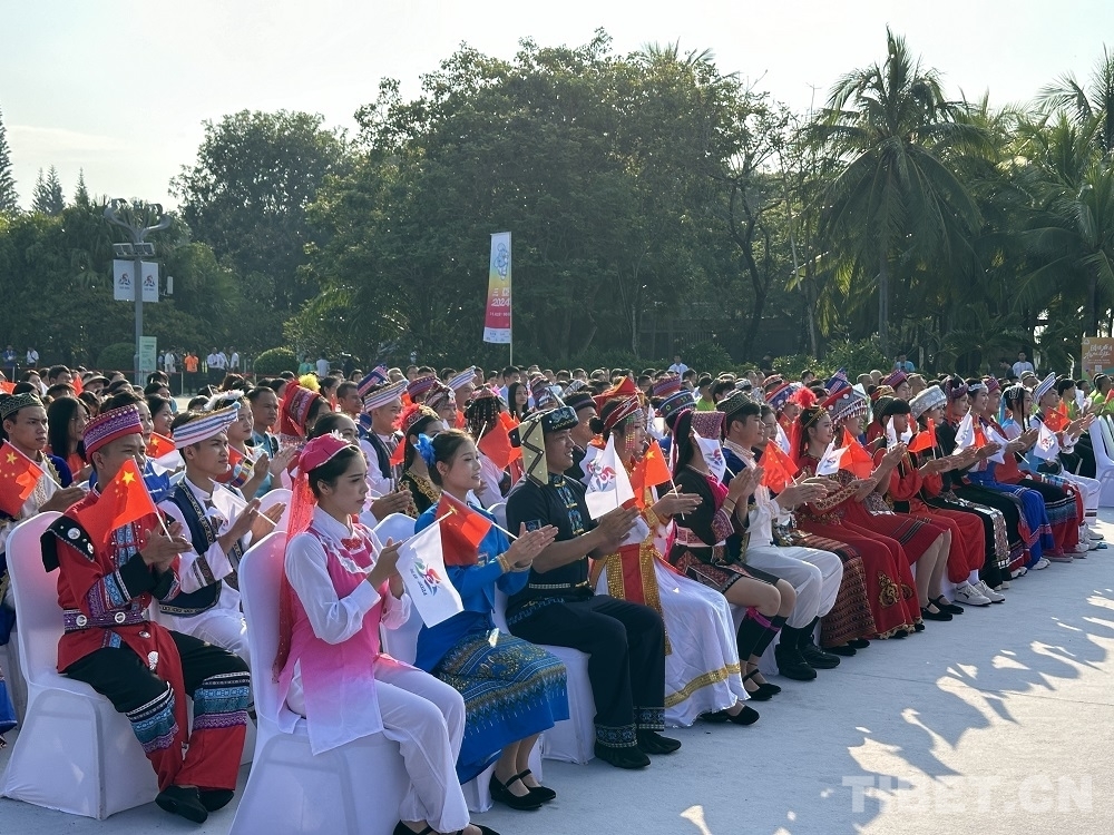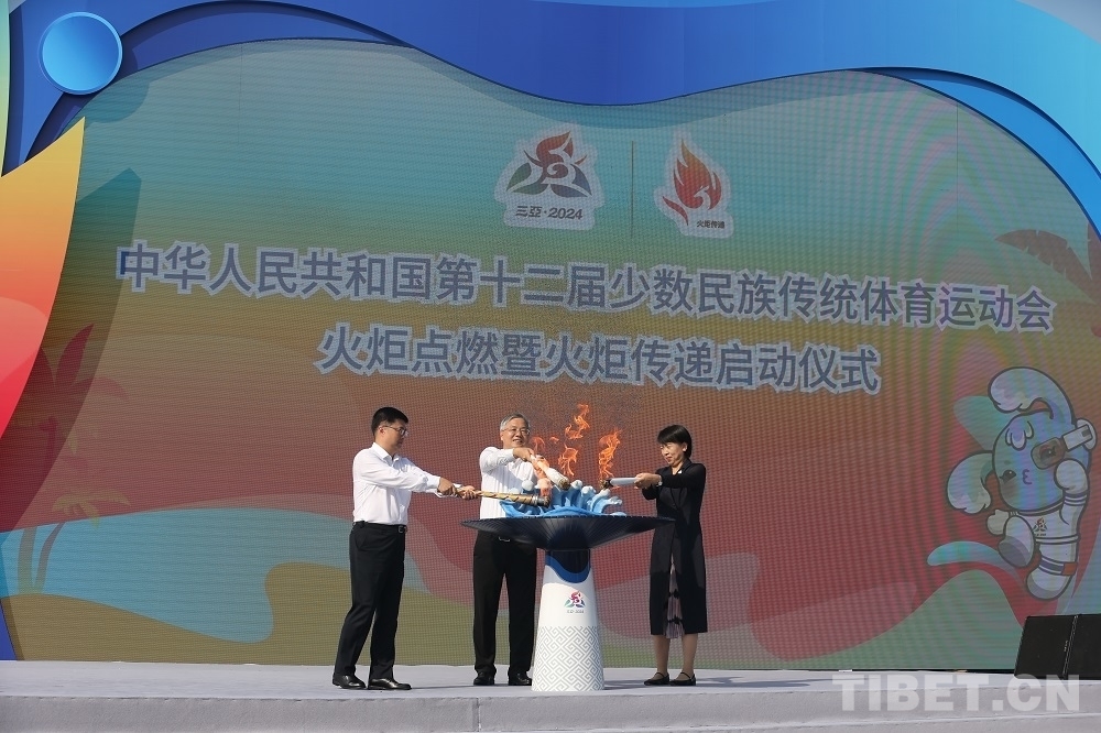 中國西藏網(wǎng)訊 10月9日,中華人民共和國第十二屆少數(shù)民族傳統(tǒng)體育運(yùn)動(dòng)會(以下簡稱運(yùn)動(dòng)會)火炬點(diǎn)燃暨火炬?zhèn)鬟f啟動(dòng)儀式在海南省三亞市天涯海角舉行。采集自海南熱帶雨林國家公園的“生態(tài)之火”、航行海洋之中“探索二號”科考船的“科技之火”、崖州灣國家南繁科研育種基地的“希望之火”同頻共燃,匯聚成象征中華民族一家親、同心共圓中國夢的“同心之火”,表達(dá)著全國各族人民攜手并肩、共同邁向美好未來的堅(jiān)定決心。