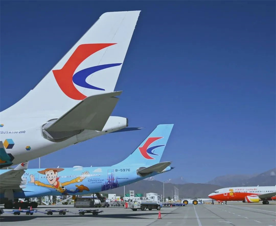圖為拉薩貢嘎國際機場機坪保障現(xiàn)場