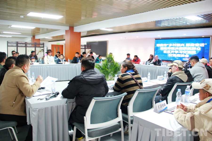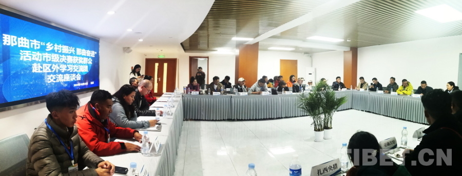 圖為10月22日,來自西藏自治區(qū)那曲市第三屆“鄉(xiāng)村振興 那曲奮進”活動市級決賽第一名獲獎群眾代表區(qū)外學習交流團抵達住地后,與中國藏學研究中心專家們進行交流座談 攝影:劉莉