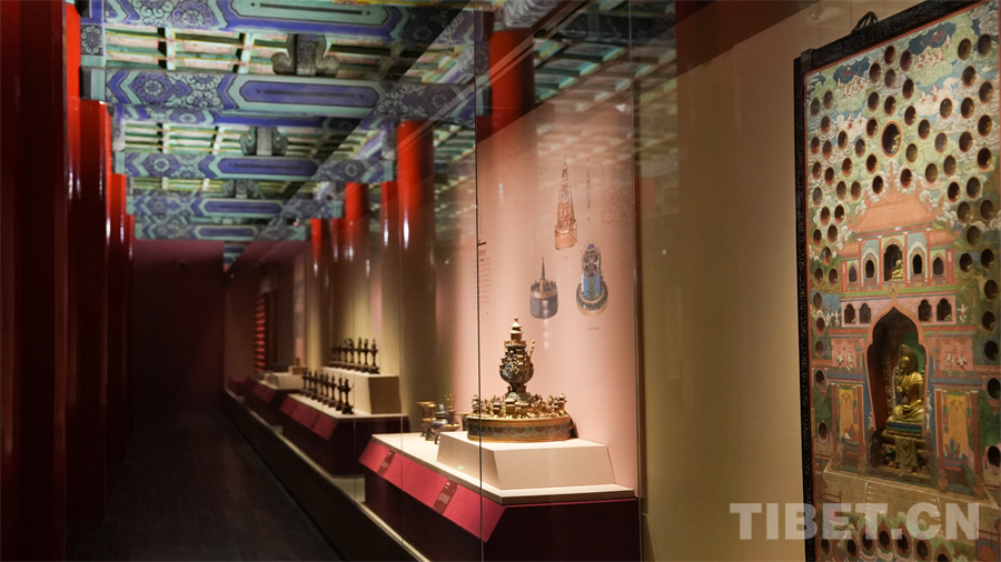 圖為2023年于故宮博物院舉辦的“祥開萬象——故宮與西藏文物聯(lián)展”展廳現(xiàn)場(chǎng) 攝影:趙振宇