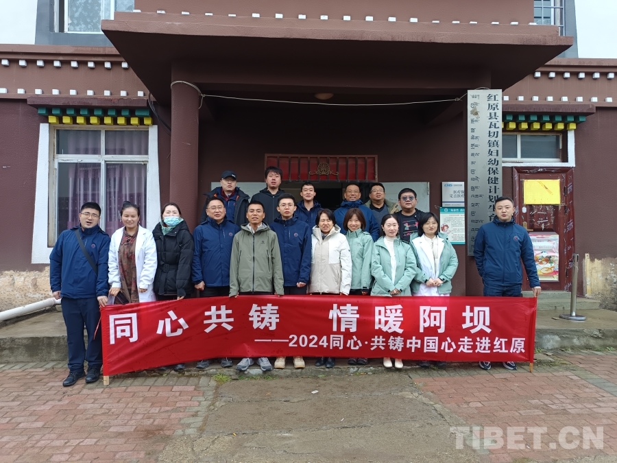 圖為“同心共鑄 情暖阿壩——‘同心·共鑄中國心’2024阿壩行”活動赴四川省阿壩藏族羌族自治州紅原縣的專家及北京同心共鑄公益基金會工作人員合影 攝影:賈春玲