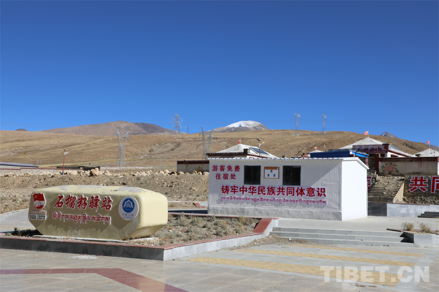 在西藏日喀則市拉孜縣熱薩鄉(xiāng)強(qiáng)公村,318國(guó)道5000公里紀(jì)念碑廣場(chǎng)上很多游客在三五成群拍照留念,廣場(chǎng)旁邊的樓房里也熱鬧非凡。樓里的石榴籽紅色驛站里,休息、喝水、充電等服務(wù)一應(yīng)俱全,還有當(dāng)?shù)鼐用裨诖虽N(xiāo)售手工藝品、食品、特產(chǎn)等?!袄淇扇∨?、熱可納涼、渴可喝水、急可如廁、累可歇腳、傷可用藥”的“紅色驛站”也吸引更多游客在此駐足。