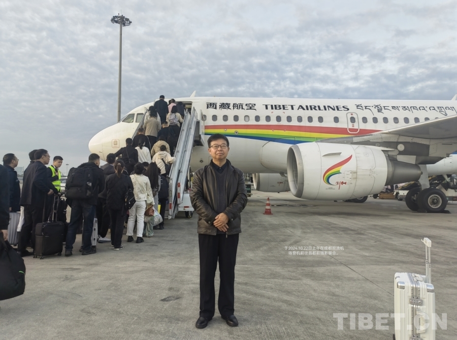 圖為作者在成都雙流機(jī)場飛往昌都邦達(dá)機(jī)場的航班前留影 作者供圖