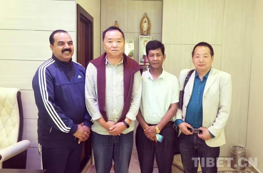 圖為阿旺晉美(左二)在尼泊爾洽談