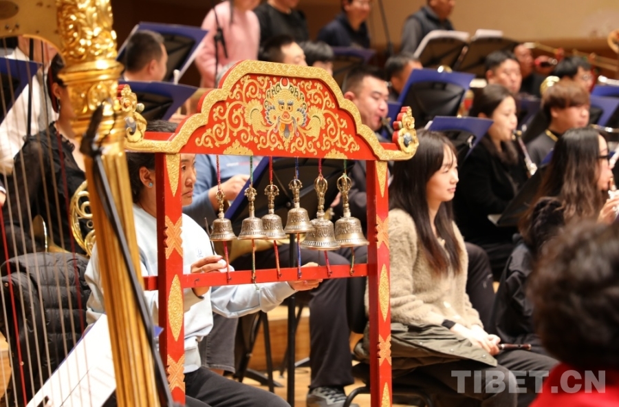 “我們交響樂當中使用了不少民族樂器,有藏族的傳統(tǒng)樂器藏大號、藏鈸、扎木念、赤布(藏鈴),也有二胡、鼓、笛等等,這也使得作品跟其他樂團不一樣?!蹦岈斦f,“交響樂有了民族樂器的加入,這種中西結(jié)合讓作品國際范兒中有了民族風味,這也是我們所做的一些創(chuàng)新和融合,也展現(xiàn)了西藏音樂特有的魅力?!?/p>