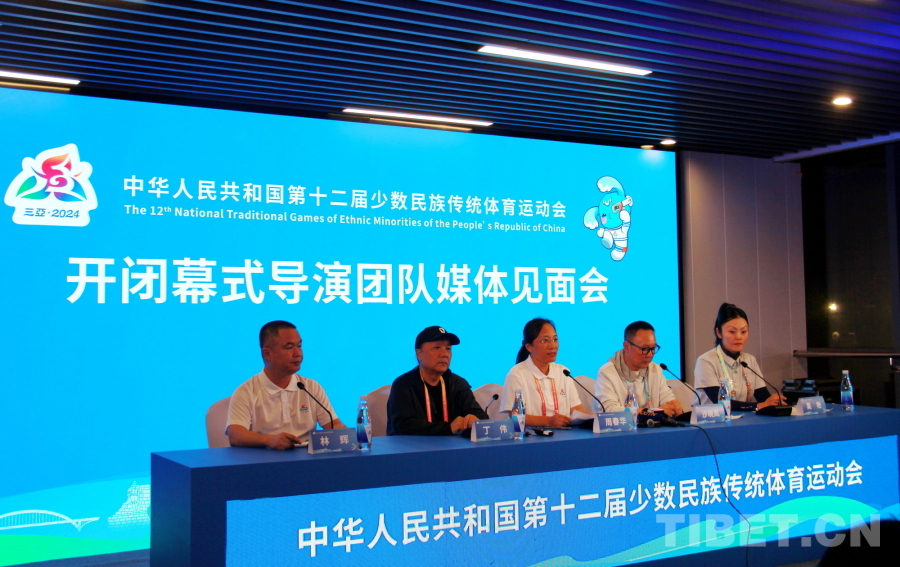 中國西藏網(wǎng)訊 11月22日,中華人民共和國第十二屆少數(shù)民族傳統(tǒng)體育運動會(以下簡稱運動會)在海南三亞開幕。開幕式結(jié)束后,運動會開閉幕式導(dǎo)演團隊媒體見面會在三亞市體育中心舉行。導(dǎo)演團隊就開閉幕式、主創(chuàng)團隊、演員排練和幕后的精彩故事進行了介紹。