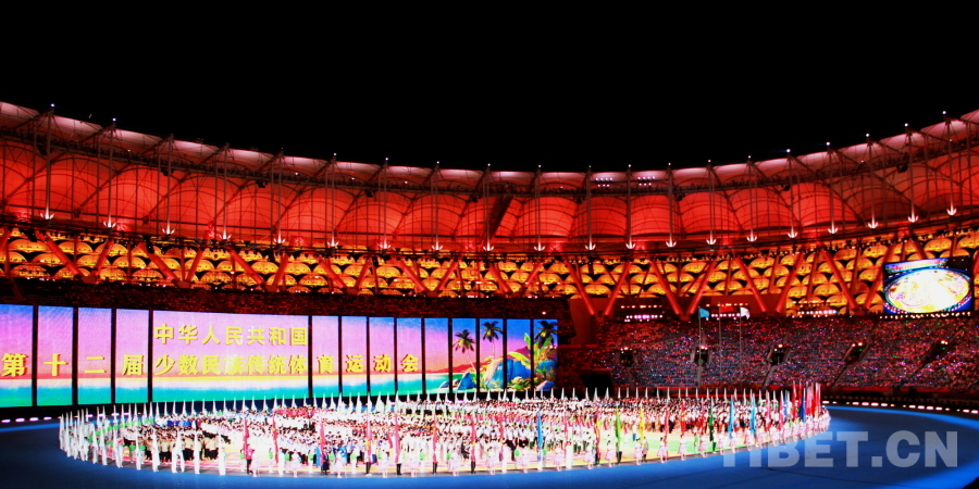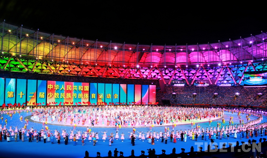 圖為第十二屆全國少數(shù)民族傳統(tǒng)體育運動會開幕式現(xiàn)場 攝影:劉莉