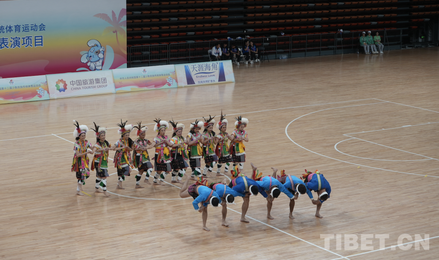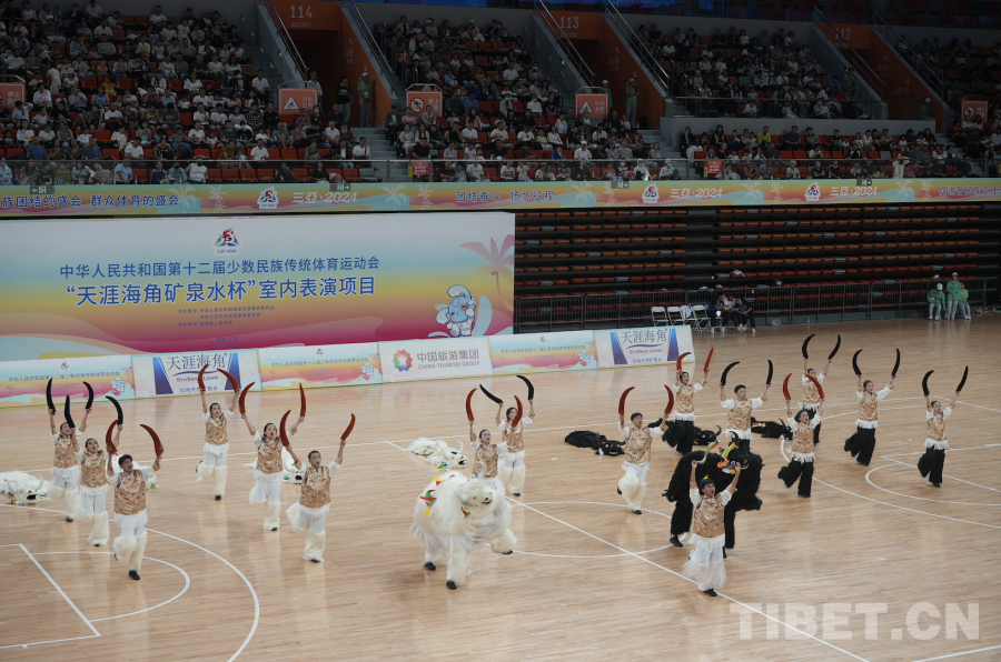 中國(guó)西藏網(wǎng)訊 11月24日,第十二屆全國(guó)少數(shù)民族傳統(tǒng)體育運(yùn)動(dòng)會(huì)表演項(xiàng)目(室內(nèi))在海南省三亞市體育中心體育館舉行。(中國(guó)西藏網(wǎng) 記者/蘇洋)
