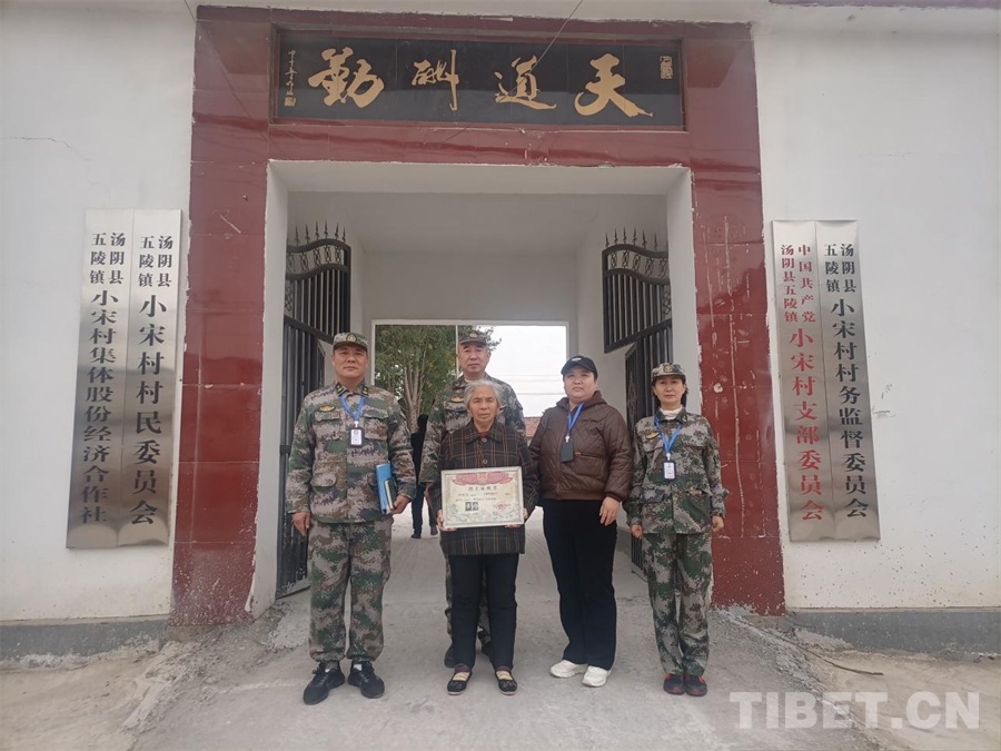 圖為“我為烈士來尋親”“安陽市退役軍人長城志愿服務(wù)總隊(duì)”烈士尋親工作組與申克玉烈士親屬合影