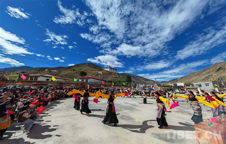圖為洛隆縣碩督鎮(zhèn)民族團(tuán)結(jié)廣場開展紀(jì)念洛隆解放74周年文藝表演活動(dòng)