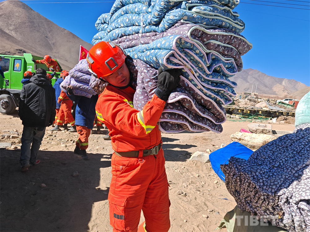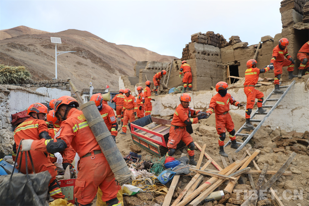 中國西藏網(wǎng)訊 人民至上,生命至上。在平均海拔四千多米的定日地震災(zāi)后現(xiàn)場,西藏自治區(qū)定日縣措果鄉(xiāng)野江村安置點,西藏森林消防總隊日喀則市森林消防大隊始終堅守在現(xiàn)場。隊員們抓緊每一分每一秒開展救援工作,深入倒塌的房屋建筑搜救,合力扛運出當(dāng)?shù)厝罕姷奈镔Y物品,連夜扎牢安置點帳篷,為群眾送去一碗熱騰騰的吃食和甜茶……一起走進現(xiàn)場這些讓人動容的瞬間。(中國西藏網(wǎng) 記者/吳建穎 王茜 王妍丹 通訊員/洛桑加措 鄭龍 日喀則市森林消防大隊供圖)