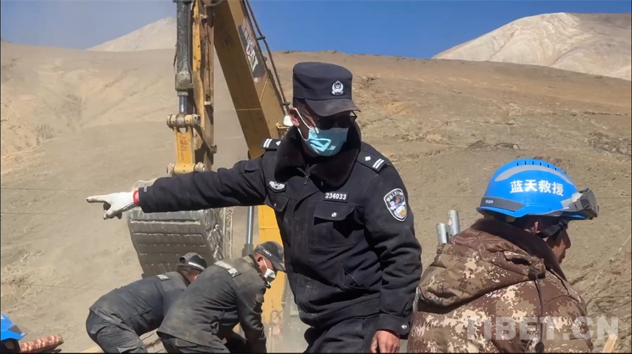 圖為拉孜縣公安民警在土林村開(kāi)展救援工作 攝影:格桑羅布