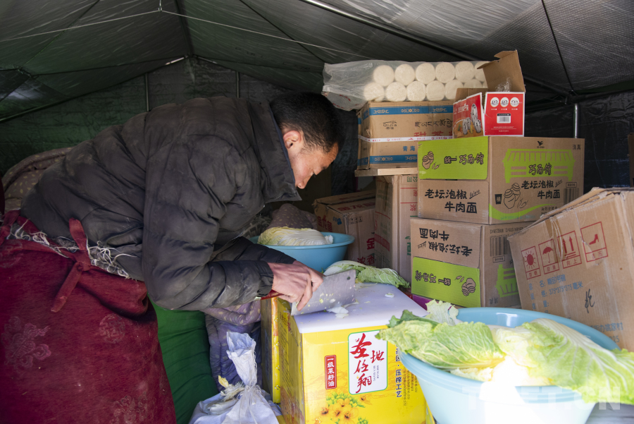 “輕傷的僧尼在我們縣醫(yī)院就診,重傷的僧尼我們第一時間就已轉運至日喀則市人民醫(yī)院,其余的僧尼我們于地震當日就已搭建好帳篷統(tǒng)一在森嘎曲德寺旁的空地進行安置?!痹谑転纳岚仓命c,一間間活動板房整齊排列,僧尼們正在點柴燒水、切大白菜,為今日午餐做準備。