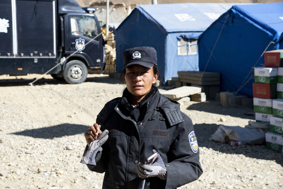 在嘎白村,有一位年齡最小的黨員名叫阿旺德金,去年剛剛大學(xué)畢業(yè)的她選擇到嘎白村成為一名科技振興專干。相較于塔杰書(shū)記、頓珠巴姆隊(duì)長(zhǎng)以及次仁玉珍來(lái)說(shuō),她的工作經(jīng)驗(yàn)尚不豐富,在大災(zāi)大難面前雖還不能獨(dú)當(dāng)一面,但在自己的崗位上兢兢業(yè)業(yè)。13日,嘎白村的村民正在從安置帳篷搬往活動(dòng)板房居住,阿旺德金在一戶又一戶的帳篷內(nèi)幫助受災(zāi)群眾收拾個(gè)人物品。