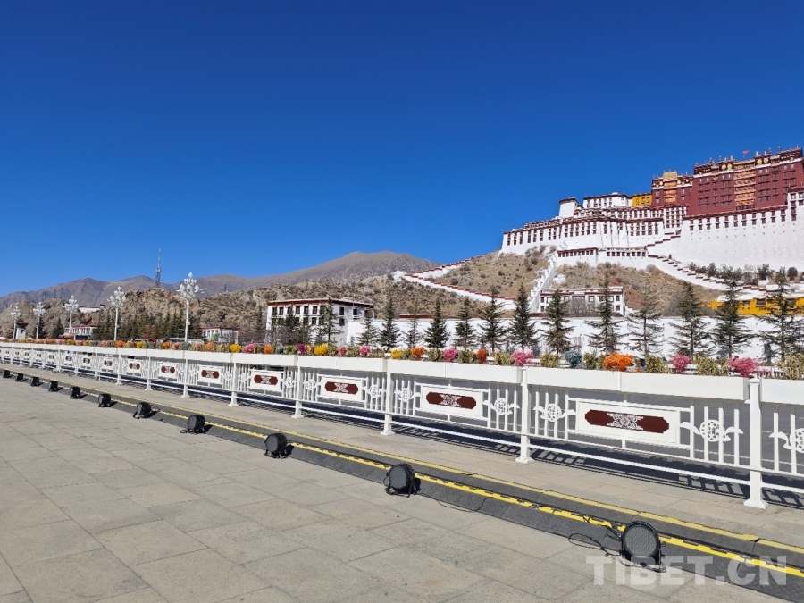圖為布達拉宮廣場的春晚分會場布置現(xiàn)場 攝影:趙婧茹