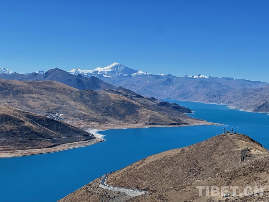 圖為湛藍(lán)的羊卓雍錯和乃欽康桑雪山交相輝映,構(gòu)成一幅美麗動人的畫卷。攝影:德吉卓瑪