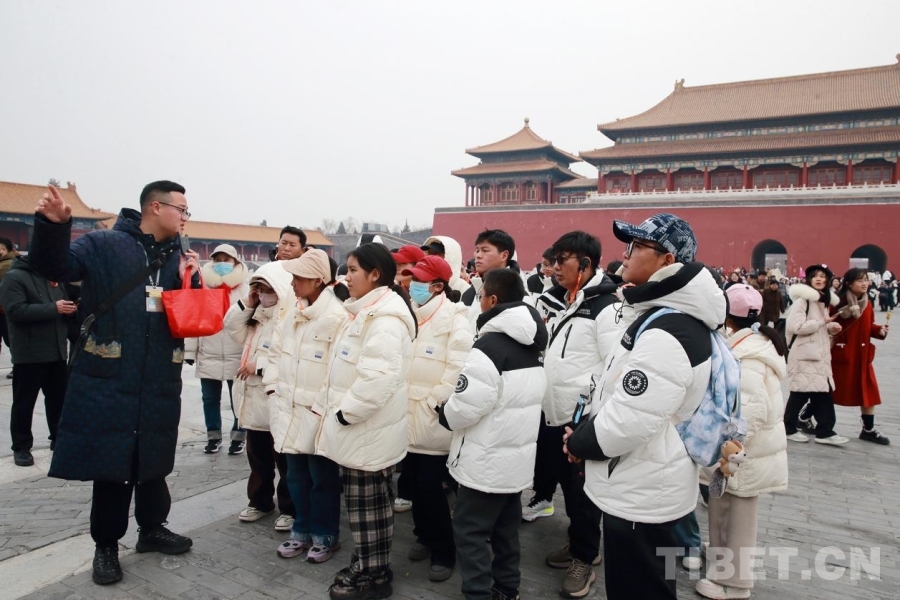 2025年2月11日,西藏自治區(qū)阿里地區(qū)邊境縣31名師生在京研學(xué),圖為同學(xué)們參觀故宮博物院 攝影:陳衛(wèi)國