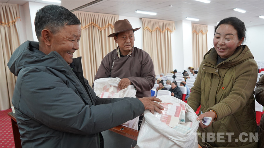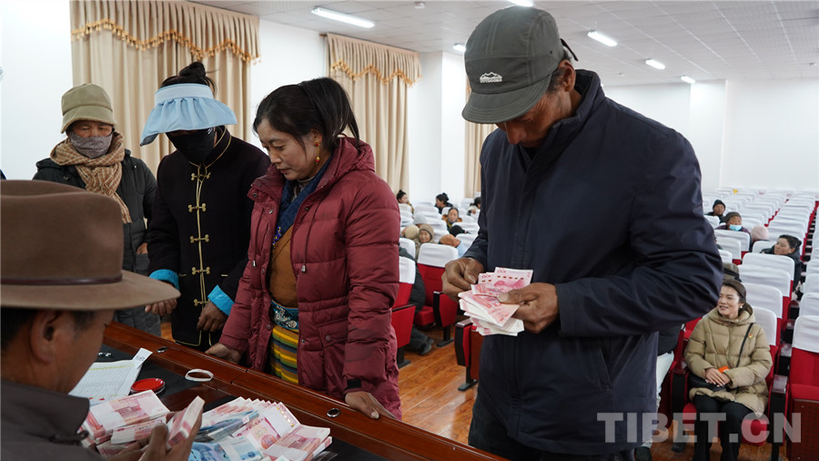 中國西藏網(wǎng)訊 2月11日,在西藏自治區(qū)山南市澤當(dāng)街道辦事處滴新社區(qū)居民委員會(huì)會(huì)議室里,一片人聲鼎沸、熱火朝天的景象,2024年滴新集體產(chǎn)業(yè)利潤分紅暨民工工資兌現(xiàn)儀式正在這里舉行。