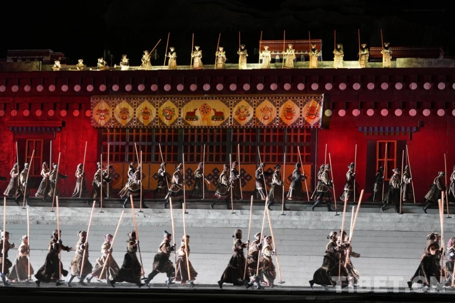圖為《文成公主》大型實景劇中群眾演員正在表演。攝影:德吉卓瑪