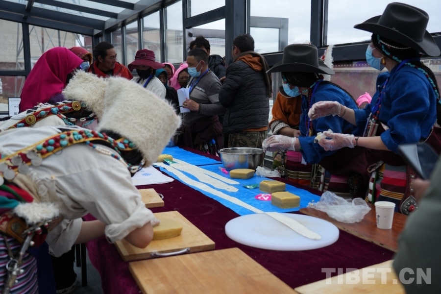 圖為“拉拉”和“推”制作現(xiàn)場。“拉拉”和“推”是藏北獨(dú)具特色的一種高品質(zhì)乳制品,它可以給牧民提供極高的營養(yǎng),是招待客人和饋贈(zèng)親朋好友的食物之一。