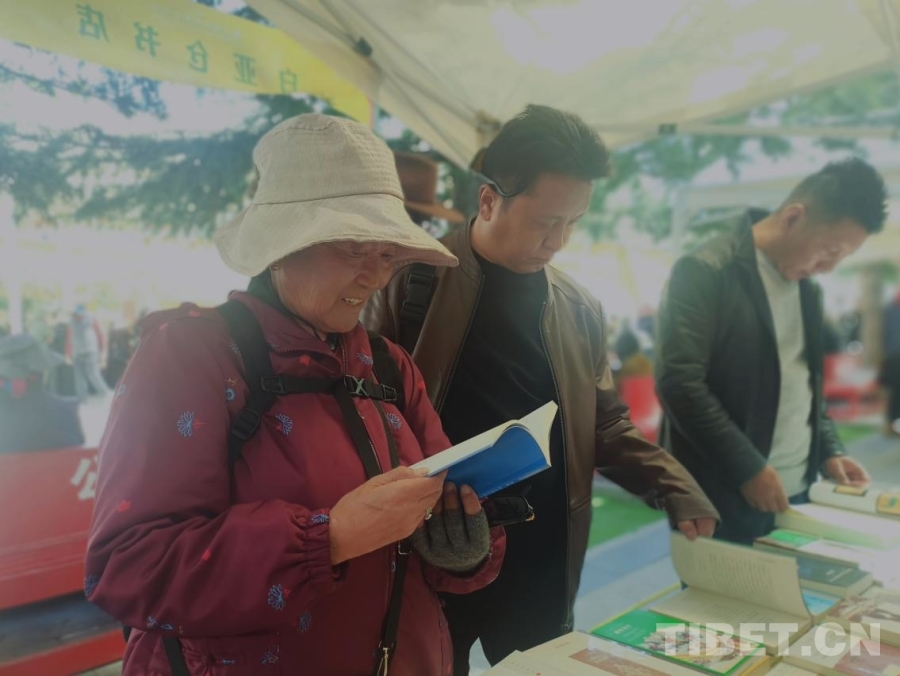 圖為4月19日,第二屆“拉薩春日書會”宗角祿康公園主會場內(nèi),市民在書攤前翻閱書籍 攝影:趙釗