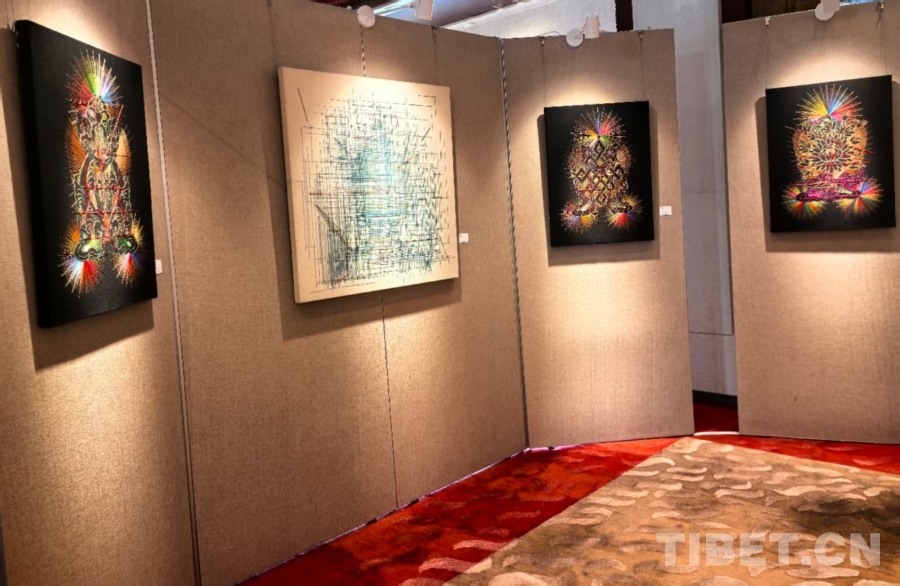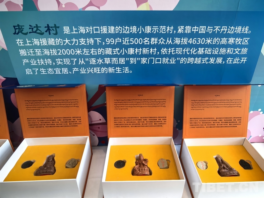 圖為5月2日至8日舉行的“三國同框 四季如畫 五彩亞東——亞東縣文化交流及特色產品展銷活動”上索喃次仁的作品展區(qū) 攝影:王淑