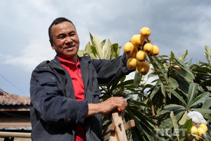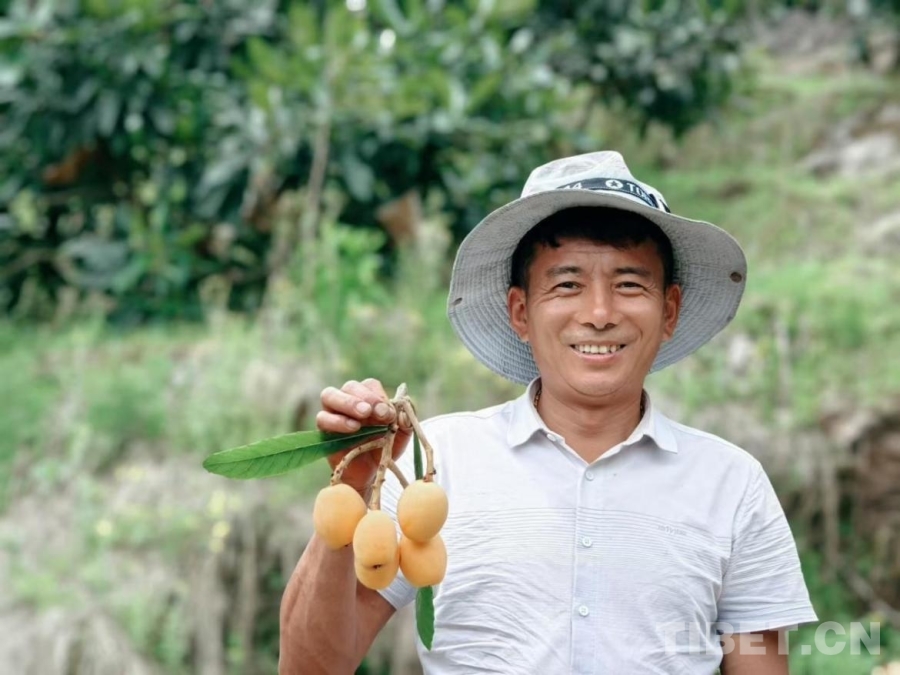 圖為西藏林芝市墨脫縣德興村村民旺扎展示今年剛摘下的枇杷(2025年4月攝) 供圖:墨脫縣農(nóng)業(yè)農(nóng)村局