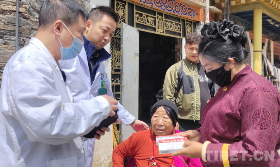 當(dāng)日上午,醫(yī)療專(zhuān)家們乘車(chē)從日部鄉(xiāng)鎮(zhèn)前往讓古寺巡診的路上,一位中年女性攔停了車(chē)輛。原來(lái),她82歲的奶奶患有多種疾病又行動(dòng)不便。聽(tīng)說(shuō)有大城市來(lái)的醫(yī)療專(zhuān)家正在當(dāng)?shù)亓x診,她輾轉(zhuǎn)打聽(tīng)到有可能車(chē)輛會(huì)路過(guò)家門(mén)口,于是一大早就和奶奶一起等在了路邊??吹綊熘巴摹す茶T中國(guó)心”橫幅的車(chē)輛來(lái)了,她就趕緊跑到路邊攔車(chē),希望專(zhuān)家們能幫奶奶看病。