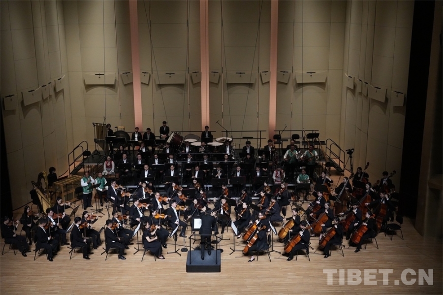 中國西藏網(wǎng)訊 為慶祝西藏自治區(qū)成立60周年,5月26日,中央音樂學(xué)院交響樂團(tuán)和西藏自治區(qū)歌舞團(tuán)民族樂團(tuán)在北京聯(lián)袂演奏西藏原創(chuàng)交響樂《祖國的西藏》。在音樂廳現(xiàn)場,西藏傳統(tǒng)樂器和西洋樂器的合奏,時(shí)而婉轉(zhuǎn)悠揚(yáng),時(shí)而激昂澎湃,盡展東方旋律之美,為聽眾們奉上一場別開生面的視聽盛宴。