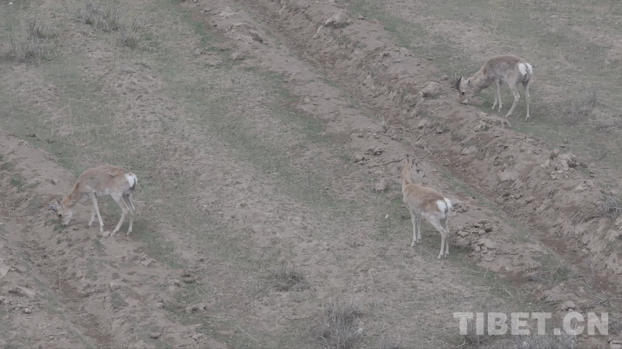 圖為無(wú)人機(jī)捕捉到的珍貴的野生普式原羚影像,它們的夏季被毛呈棕黃色,可以較好地融入周邊環(huán)境,同時(shí)性格警覺,對(duì)風(fēng)吹草動(dòng)都很敏感 青海省文旅廳供圖