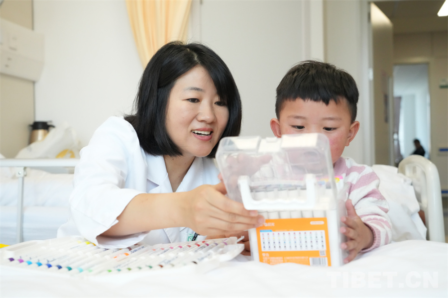 6月10日,小卓瑪在北京的治療告一段落,可以出院了。協(xié)會(huì)會(huì)長(zhǎng)金書波等相關(guān)負(fù)責(zé)人和醫(yī)院的陳偉、韓正學(xué)等前來看望小卓瑪。此時(shí)的她已經(jīng)沒有了初來醫(yī)院的緊張和羞澀,她覺得協(xié)會(huì)的爺爺奶奶、醫(yī)院的叔叔阿姨,都是她的親人和朋友。她舍不得摘下協(xié)會(huì)爺爺帶上的哈達(dá),拿著醫(yī)生阿姨送的畫筆寫寫畫畫,用還生澀的普通話跟醫(yī)生護(hù)士一個(gè)一個(gè)打招呼、擊掌,說“你好”“謝謝”……小小的身影在明亮舒適的病房里跑來跑去,笑聲清脆,充滿了活力。