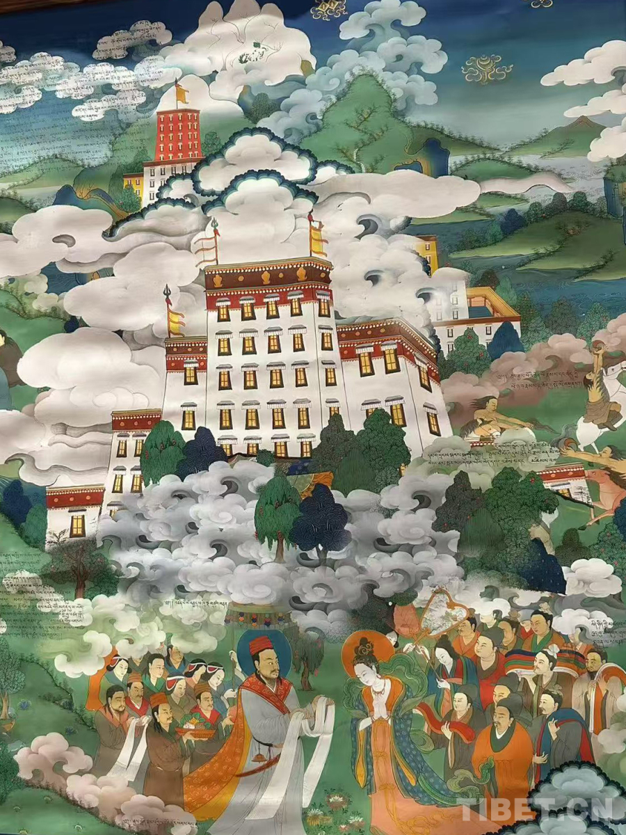 圖為唐卡《吐蕃贊普世系大唐卡金子明鏡》(局部細節(jié))