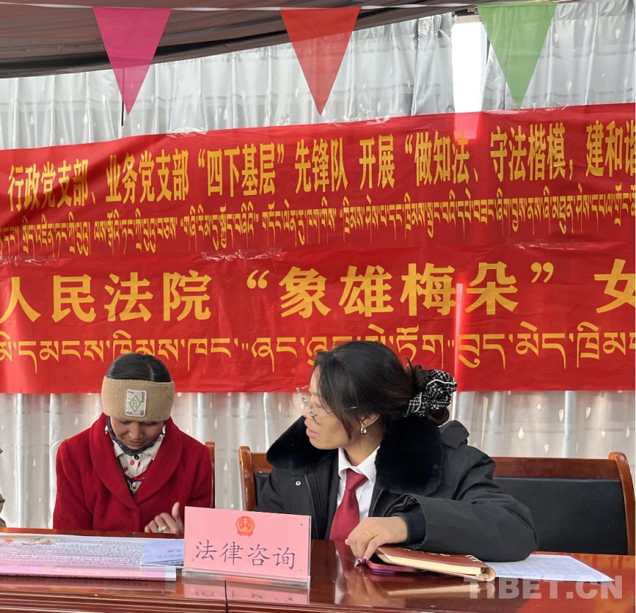 為維護(hù)全地區(qū)婦女兒童合法權(quán)益,及時(shí)解決她(他)們的揪心事、煩心事、操心事,2023年10月,“象雄梅朵”女法官維權(quán)工作站(下稱:維權(quán)工作站)成立了?!跋笮邸贝砦鞑匕⒗锏貐^(qū),“梅朵”藏語意為“花朵”。正如其名,這個(gè)由女性法官組成的工作站,延伸到了改則縣、札達(dá)縣、噶爾縣,如綻放在世界屋脊的象雄花,以“如我在訴”的司法理念,悉心、用心、貼心守護(hù)著阿里地區(qū)的一方安寧。
