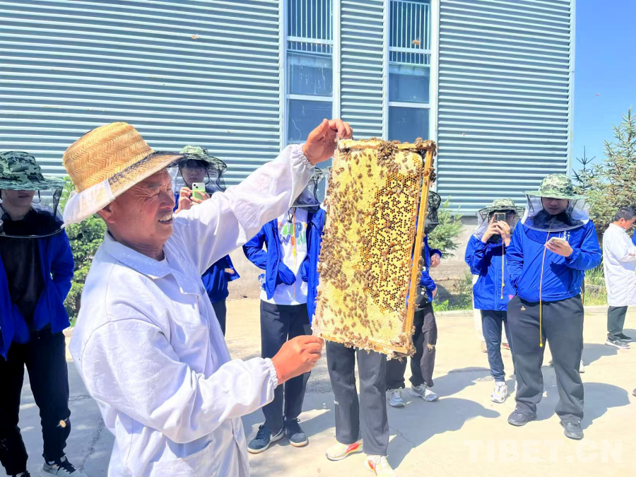 小小中華蜜蜂的“勞動(dòng)成果”也不容小覷。在第44屆國際養(yǎng)蜂大會(huì)上,青藏華峰帶著高原蜂蜜斬獲國際金獎(jiǎng),完勝當(dāng)時(shí)來自50多個(gè)國家和地區(qū)的上千個(gè)蜂蜜產(chǎn)品。如今,在政府的重視下,搭建平臺(tái)讓蜂蜜得到更好的展示,讓青藏華峰的品牌之路走得更穩(wěn)。當(dāng)工作人員現(xiàn)場打開蜂箱,展示如何采集蜂蜜時(shí),青少年們紛紛上前嘗試,親身體驗(yàn)養(yǎng)蜂的樂趣。當(dāng)金黃的蜂蜜緩緩流出,空氣中彌漫著香甜氣息,學(xué)生們臉上洋溢著興奮與驚喜,第一次吃到從蜂巢里取出的新鮮蜂蜜,感受大自然饋贈(zèng)的美好。