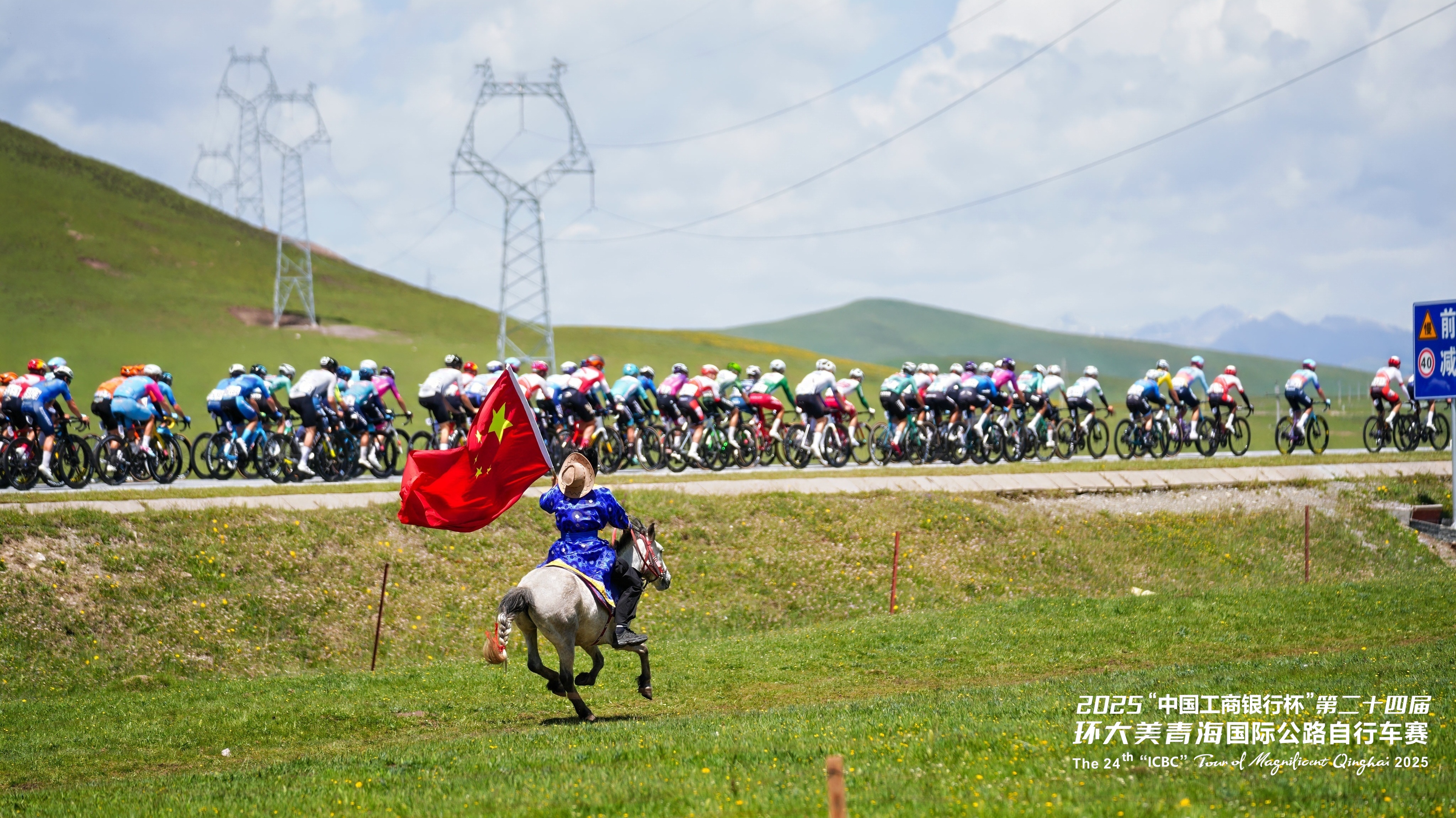 在青海湖畔,牧民們手擎國旗策馬飛馳,與選手們并肩競逐。這一場景也致敬了全球頂尖自行車賽事環(huán)法自行車賽中自行車與馬匹同行的經(jīng)典畫面——騎馬承載著人類悠久的出行記憶,自行車則象征著現(xiàn)代的綠色出行理念,此刻,在青海湖畔,傳統(tǒng)與現(xiàn)代完美交融,共同譜寫著人與自然和諧共處的動人篇章。