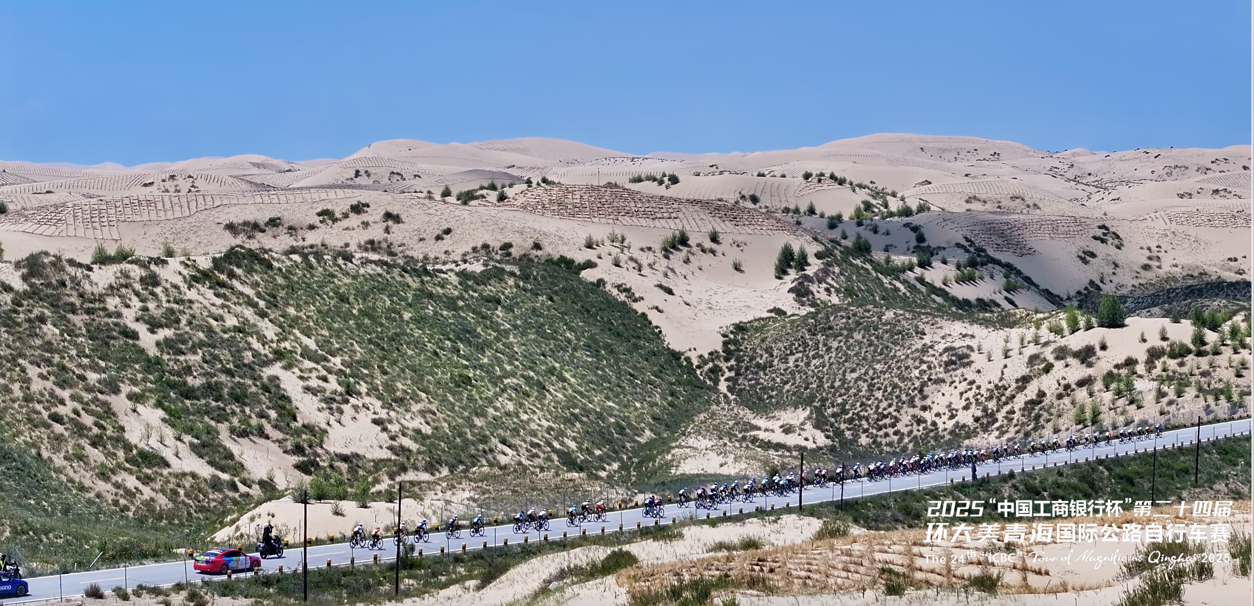 第二十四屆環(huán)青賽第六賽段——剛察-共和賽段,是本屆賽事距離最長的賽段。車隊出發(fā)后不久便駛?cè)胫沫h(huán)湖公路,這段標(biāo)志性賽程承載著環(huán)青海湖賽事的精髓和回憶。作為環(huán)青賽的前身,環(huán)湖賽段以其獨特魅力吸引著全球騎行愛好者,人們沿著賽事路線打卡騎行,盡情領(lǐng)略青海湖畔的壯美風(fēng)光。