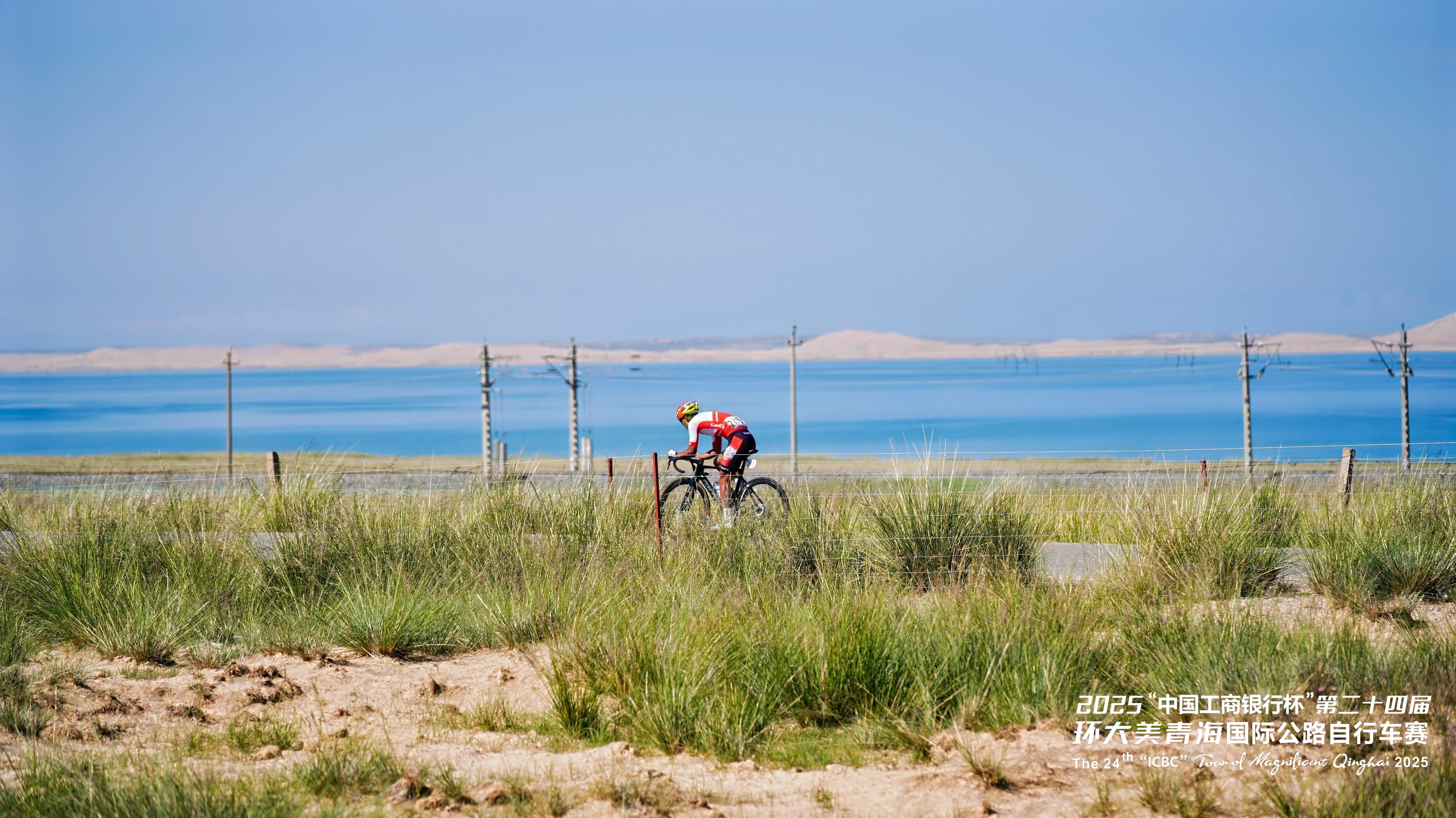 第二十四屆環(huán)青賽第七賽段——共和-海晏賽段。賽段經(jīng)過海拔約3740米的洛合埡口,居高臨下,以近乎180度的角度俯瞰青海湖,將湖面、山巒、草原盡收眼底。